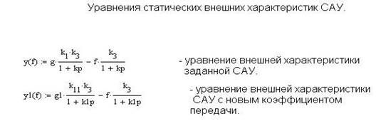 4) Построить статические внешние характеристики для заданной САУ и для САУ, у которой значение параметра