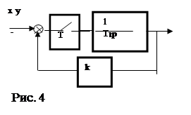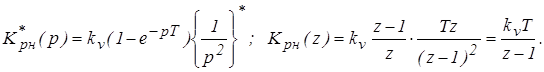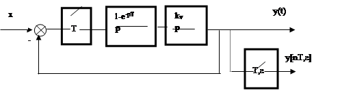 Пример 1. Рассчитать переходный процесс в заданной дискретной системе (рис. 1), и определить качество переходного процесса при различных значениях T и kv .