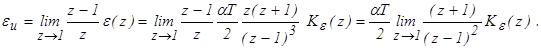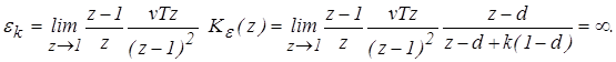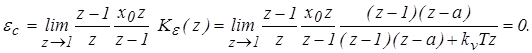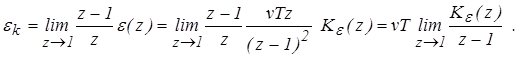 Установившееся значение ошибки определяется с помощью теоремы о конечном значении дискретной функции