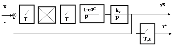 Пример 3. Для заданной системы (рис. 7) рассчитать установившиеся ошибки, если алгоритм функционирования цифровой части описывается уравнением: