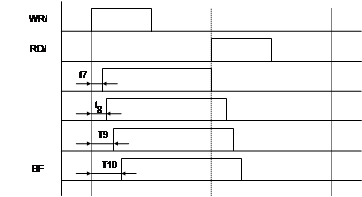 посылается на вход сброса счетчика 1. Так как счетчик должен считать +1 при входе WR, то этот сигнал надо подать на вход U/D (переключатель направления счета), а при входе RD наоборот. При переполнении счетчика 2 происходит сброс обоих счетчиков. Временная диаграмма переключений приведена на рис. 5.