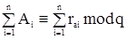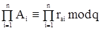 а произведение чисел сравнимо по модулю q с произведением остатков этих чисел по этому же модулю, т. е.