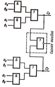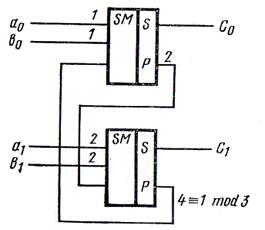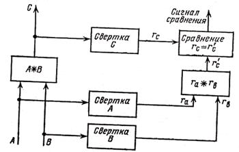 Параллельно с основной операцией (обозначим ее *) над словами А и В в контролирующем устройстве выполняется аналогичная операция над остатками r а и r ь . Затем результат операции С сворачивается и величина r с сравнивается с результатом r 'с , полученным в контрольном устройстве. Совпадение r с и r 'с свидетельствует о правильном выполнении операции.