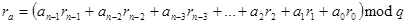 Остаток r а для различных чисел может принимать значения ra =0, 1, 2,...,q-l. Таким образом, каждому целому числу А можно поставить в соответствие остаток r а , полученный в результате деления этого числа на некоторый модуль q. Это соответствие записывается в виде: