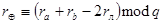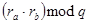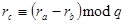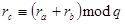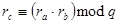 От кодовых слов, представляющих числа А и В, образуются остатки r а и r ь по выбранному модулю контроля q.