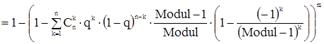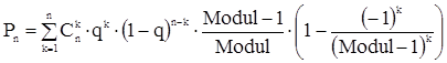 Sum = Sum + (f * а ^ i * (1 - а) ^ (n - i) * ((Modul-1)/Modul) * (1 - ((-1) ^ i) / /((Modul-1) ^ i)))