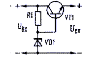 При большем токе нагрузки используют дополнительный транзистор VT1, включенный как эмиттерный повторитель (рис. 1.2.).