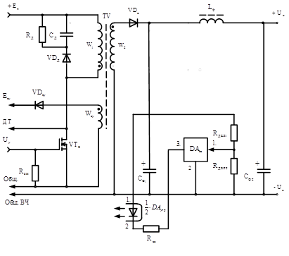 трансформатораTV; УГР - устройство гальванической развязки, выполняющее функции электрической изоляции аналогового сигнала управления; СС - схема сравнения, осуществляющая сравнение выходного напряжения ОПНО с внутренним опорным напряжением СС и вырабатывающая на этой основе аналоговый сигнал для передачи на УГР. Напряжение вторичной обмотки