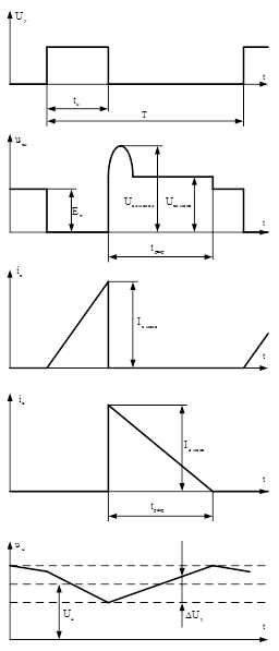 , чтобы к следующему моменту времени выключения транзистора конденсатор смог “поглотить” следующий импульс тока, накопленный в индуктивности рассеяния. Закон изменения напряжения на
