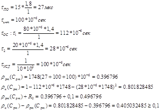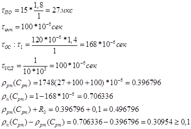 r0 =С0 ×(tпо +tинт +tусд )=1731,291 ×(27×10-6 +100×10-6 +100×10-6 )=0,3930