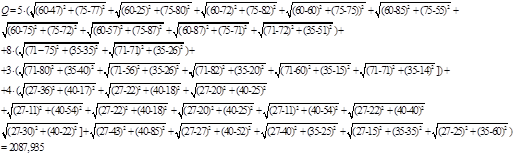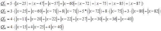 Здесь Qi - стоимость i-ой компоненты АСНИ; ri - загрузка (или коэффициент использования) i-ой компоненты. Компонентами АСНИ являются УСД, ЭВМ, блоки памяти, сеть связи, ОС. Их стоимости соответственно: Qусд , Qэвм , Qбп , Qсети , Qос . Загрузка компонент:
