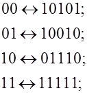– разрешенному для передачи подмножеств векторов соответствует два запрещенных подмножества векторов