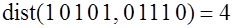 – это число рёбер, которые нужно пройти, чтобы перевести один вектор в другой, т.е. попасть из вершины одного вектора в вершину другого.