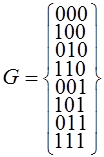 разрешённых кодовых слов предоставлено в виде двоичных комбинаций с чётным числом единиц.