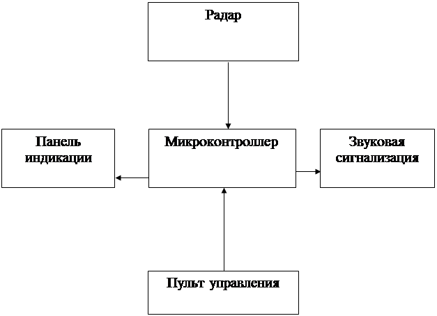 Также для анализа полученных от радара данных необходимо микропроцессорное устройство. Оно будет сравнивать значения с радара с критическими данными, и в случае их превышения подавать сигнал на звуковое устройство. Кроме того, в системе будут использованы элемент ввода, для выбора состояния дорожного покрытия и индикаторная панель для отображения дистанции до препятствия и подачи светового сигнала.