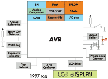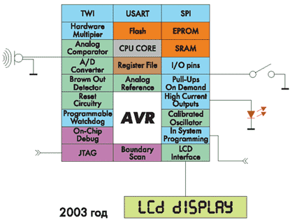 Рисунок 2 - Структурные схемы микроконтроллеров AVR в 1997 и 2003 годах