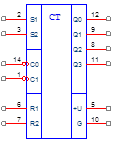 подано напряжение низкого уровня, то разрешается работа тактовому входу С1. Отрицательные фронты последовательности тактовых импульсов сдвигают данные от последовательности входа S1 на выход Q0, затем на Q1,Q2,Q3, т.е. вправо.