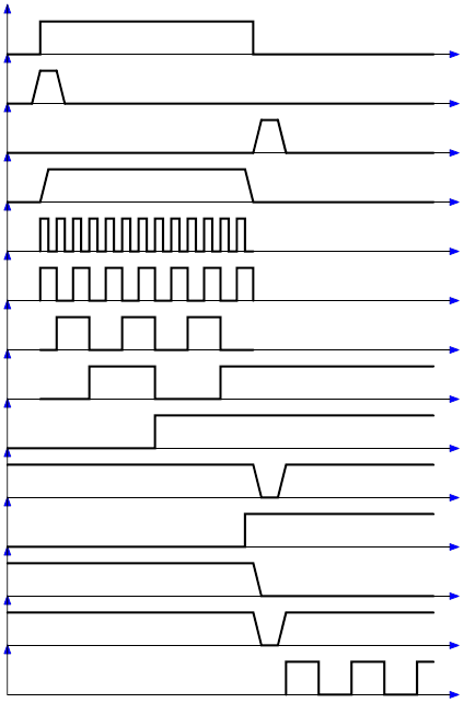 По заднему фронту изменяемого импульса с выхода детектора фронтов на входную схему задержки поступает положительный импульс. Со схемы задержки этот импульс поступает на вход