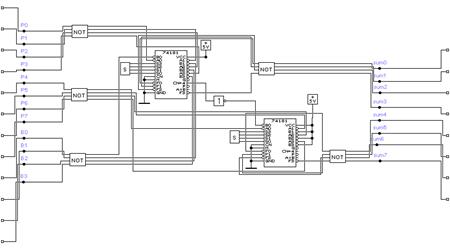 Микросхема компаратора обычно имеет дополнительные входы с теми же обозначениями, что и выходы A = B, A > B, A < B, которые используются для наращивания компаратора путем каскадного соединения схемы.