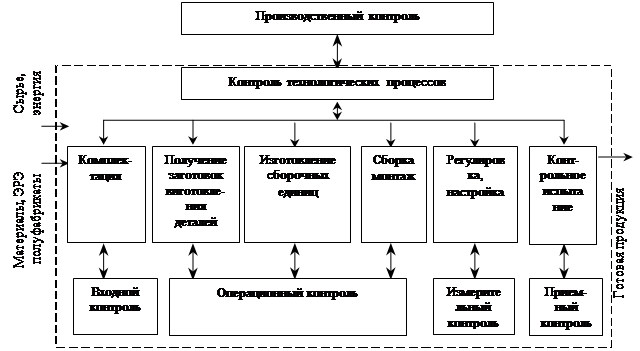 На рис.2.2 приведена обобщенная структурная схема технического контроля качества изделий. Схема дает представление о видах контроля на разных стадиях производственного процесса.