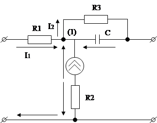, для чего используем принципиальную схему активного фильтра. Эквивалентное сопротивление на узле (1) схемы соответствует сопротивлению параллельного соединения