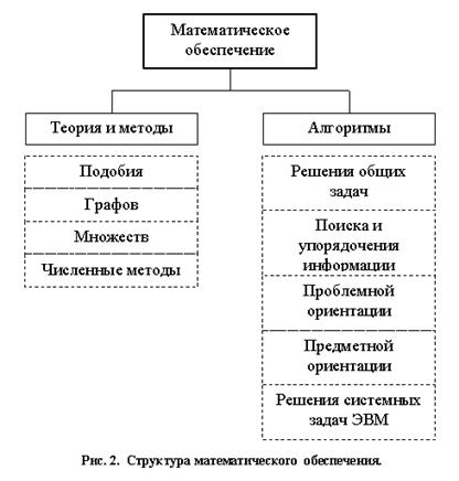 | 3.1. Математическое обеспечение Математическое обеспечение включает в себя теорию, методы, способы и алгоритмы для организации вычислений в САПР (рис. 3.).