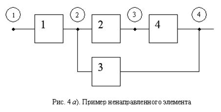 | Языки проектирования можно разделить на три группы: · описательные, или структурного типа; · моделирующие, или процедурного типа; · диалоговые, или директивного типа. Язык описания (структурный язык) состоит из трех частей: · описания объекта; · описания задачи; · описания элементов. Каждая из частей, в свою очередь, имеет следующую структуру: · тип элемента, · тип модели элемента, · параметры модели элемента, · топологические связи элемента. Например, описание транзистора включает в себя тип транзистора, тип его модели в программе, параметры этой модели и топологические связи. Способ описания топологических связей зависит от типа элемента – направленного (рис. 4. а) или ненаправленного (рис. 4. б). Так резистор представляет собой пример ненаправленного элемента и порядок указания узлов для него не важен. Логический элемент наоборот является направленным элементом, поэтому порядок перечисления его выводов имеет значение. Таблицы для ненаправленных элементов Таблица 1. Элемент-узел