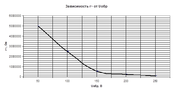 | Зависимость r~ от Uобр |