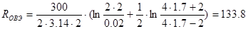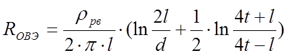 где t – расстояние от уровня земли до середины электрода для нашего случая t = 1,7 м при наших условиях