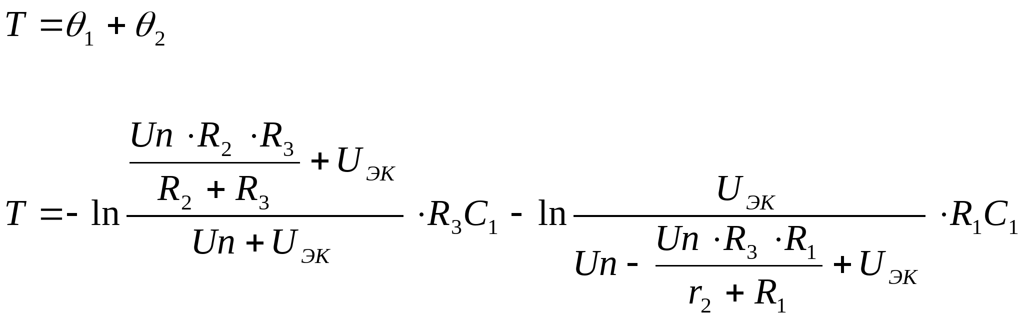 Решая эту систему получим выражение для амплитуды длительности импульса и периода через параметры схемы.