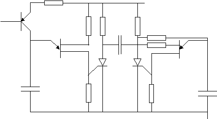 Генератор пилообразного напряжения выполнен на транзисторе VT1 и двухбазовом диоде (или однопереходном транзисторе) VT2, конденсаторе С1 и резисторе R3.