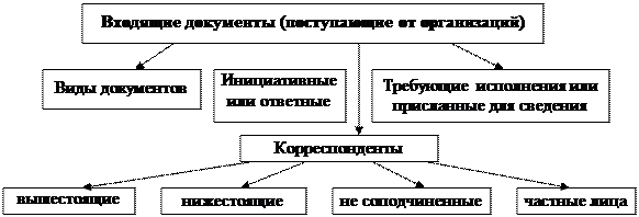 Входящие документы различаются по корреспондентам (авторам документов, от которых они получены):