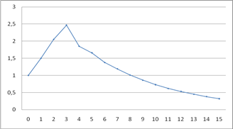 w(2)=δ(2)+δ(2-1)+δ(2-2)+δ(2-3)+0,5*w(2-1)+0,3*w(2-2)