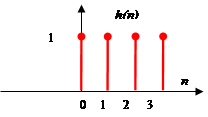 w ( n )=1* δ ( n )+1* δ ( n -1)+1* δ ( n -2)+1* δ ( n -3)+0,5* w ( n -1)+0,3* w ( n -2)