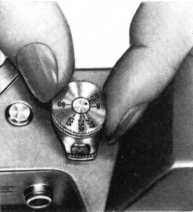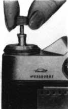4. Оттянуть вверх головку обратной перемотки и вынуть кассету. Примечание. При последующей съемке необходимо взвести затвор и, придерживая пальцем мерный валик, убедиться, что последний включился.