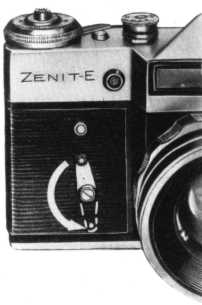 "Зенит-Е" - однообъективный зеркальный фотоаппарат со встроенным и несопряженным экспонометром и механизмом зеркала постоянного визирования. Зеркало постоянного визирования позволяет непрерывно наблюдать объект съёмки, кроме момента экспонирования. Встроенный экспонометр особенно ценен при работе с цветной пленкой. По своим техническим данным фотоаппарат "Зенит-Е" может применяться для любительских и целого ряда специальных съемок. Фотоаппарат "Зенит-Е" допускает использование имеющихся в продаже сменных объективов с фокусным расстоянием от 37 до 1000 мм. Устройство зеркального видоискателя (фокусировка изображения по матовому стеклу) позволяет применять удлинительные кольца, производить с его помощью репродукционные работы, съемку мелких предметов с большим увеличением (макросъемку), съемку с помощью микроскопа (микросъемку), съемку крупным планом далеко или близко расположенных предметов. Механизм зеркала постоянного визирования, встроенный экспонометр, рычажный взвод затвора, шарнирное крепление задней крышки, небольшие габариты и малый вес -- все это важные достоинства фотоаппарата "Зенит-Е". Фотоаппарат выпускается в двух вариантах: с объективом "Гелиос-44-2" -- 2/58 мм, с объективом "Инду-стар-50-2" -- 3,5/50 мм. Фотоаппарат "Зенит-Е" рассчитан на применение стандартных кассет.