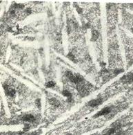 На микроструктуре (рисунок 1.3) ясно видна выделяющаяся богатая золотом фаза, принимающая форму пластинчатых кристаллов и представляющая собой золото-оловянный интерметаллид. Кроме того, между золотом и свинцом, который затвердевает вокруг богатых; золотом кристаллических участков, наблюдается вторичная эвтектическая фаза. Наконец, возникает оловянно-свинцовая фаза, имеющая на фотографии более темный цвет.