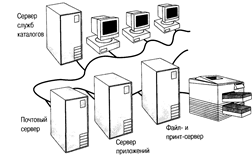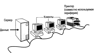 · совместно используемые периферийные устройства, например принтеры, библиотеки CD-ROM и т.д., — ресурсы, предоставляемые серверами;