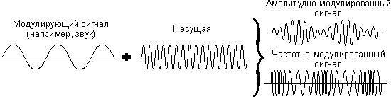 Рис. 1. Принцип амплитудной и частотной модуляции.