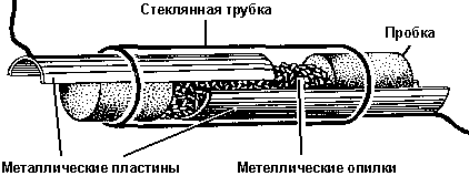 В качестве регистратора сигналов в то время использовалось специальное устройство – когерер. Когерер представлял собой стеклянную трубку, заполненную металлическими опилками. При прохождении электрического сигнала опилки спекались и становились проводником тока.