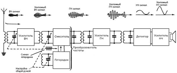 Рис. 7. Классическая блок-схема супергетеродинного приемника.