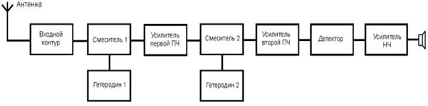 Рис. 8. Блок-схема супергетеродинного приемника с двойным преобразованием частоты