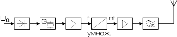 Частотная модуляция может быть получена прямым способом, когда модулируется непосредственно частота автогенератора передатчика, или косвенным, когда в промежуточном каскаде передатчика производится фазовая модуляция. Структурные схемы передатчиков с этими способами модуляции приведены ниже.