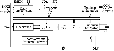 | 17 | ZB | Вывод для одного из 2-х сигналов: служебного сигнала (для коммутации при переходе на другой диапозон) или сигнала признака «захвата» частоты системой ФАПЧ | Выход с открытым стоком |