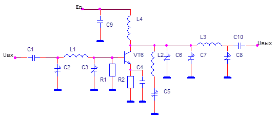 Используем два последовательно включенных однокаскадных удвоителя частоты для обеспечения небольшого значения коэффициента нелинейных искажений сигнала и повышения КПД всей схемы.