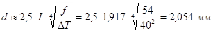 где d – диаметр провода, мм I – радиочастотный ток, А (действующее значение); f – частота радиочастотного тока, МГц; DT – разность температур провода и окружающей среды (возьмём DT= 40 °С).