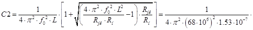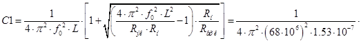 Для обеспечения работы вблизи последовательного резонанса резонатора необходимо последовательно с резонатором включить индуктивность. Находим для двух граничных значений ёмкости варикапа значение индуктивности: