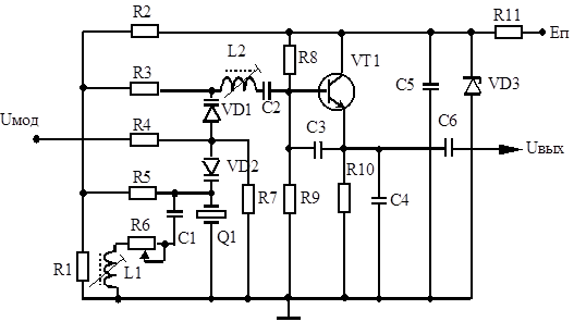 Используем встречно-последовательное соединение, когда варикапы соединяются последовательно в частотозадающую цепь генератора и параллельно по отношению к модулирующему напряжению и напряжению смещения.