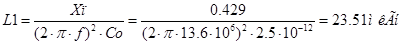 Для уменьшения нелинейных искажений введём корректирующую индуктивность параллельно резонатору. Приведённое сопротивление индуктивности определяем по формуле: