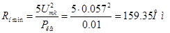 Минимальное допустимое сопротивление нагрузки из условия, что выходная мощность составляет 10% от мощности, рассеиваемой на кварце: